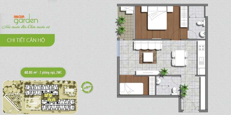 Đây là mẫu căn hộ phổ biến nhất tại chung cư An Gia Garden – Mỗi sàn có 12 căn. Cũng là căn hộ dễ Bán và Cho thuê nhất.