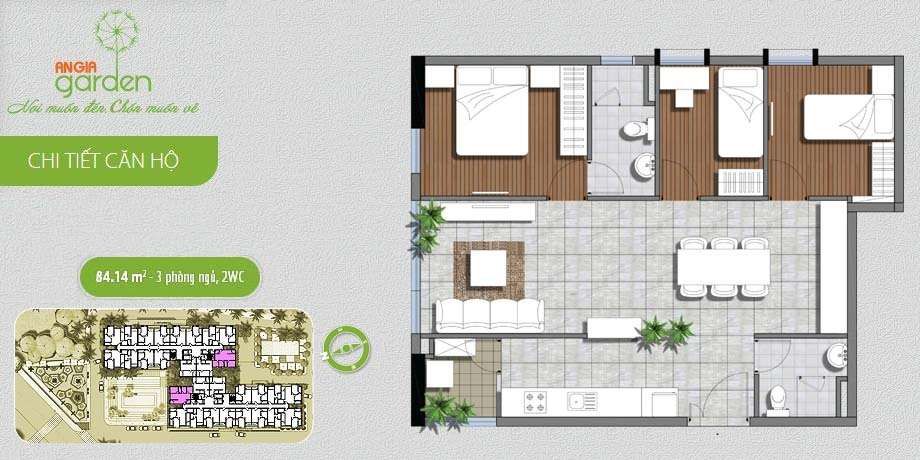 Xem hình ảnh căn hộ thiết kế tại fanpage của chung cư An Gia Garden